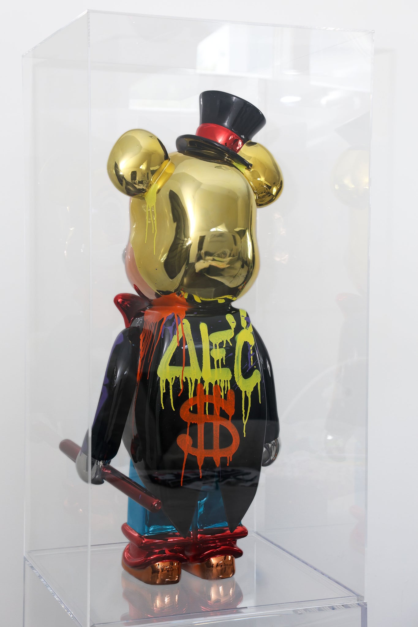 This captivating sculpture is crafted in electroplated chrome giving it a metallic shine, hand painted by Alec Monopoly using both spray paint and intricately detailed acrylic accents in the eyes.
