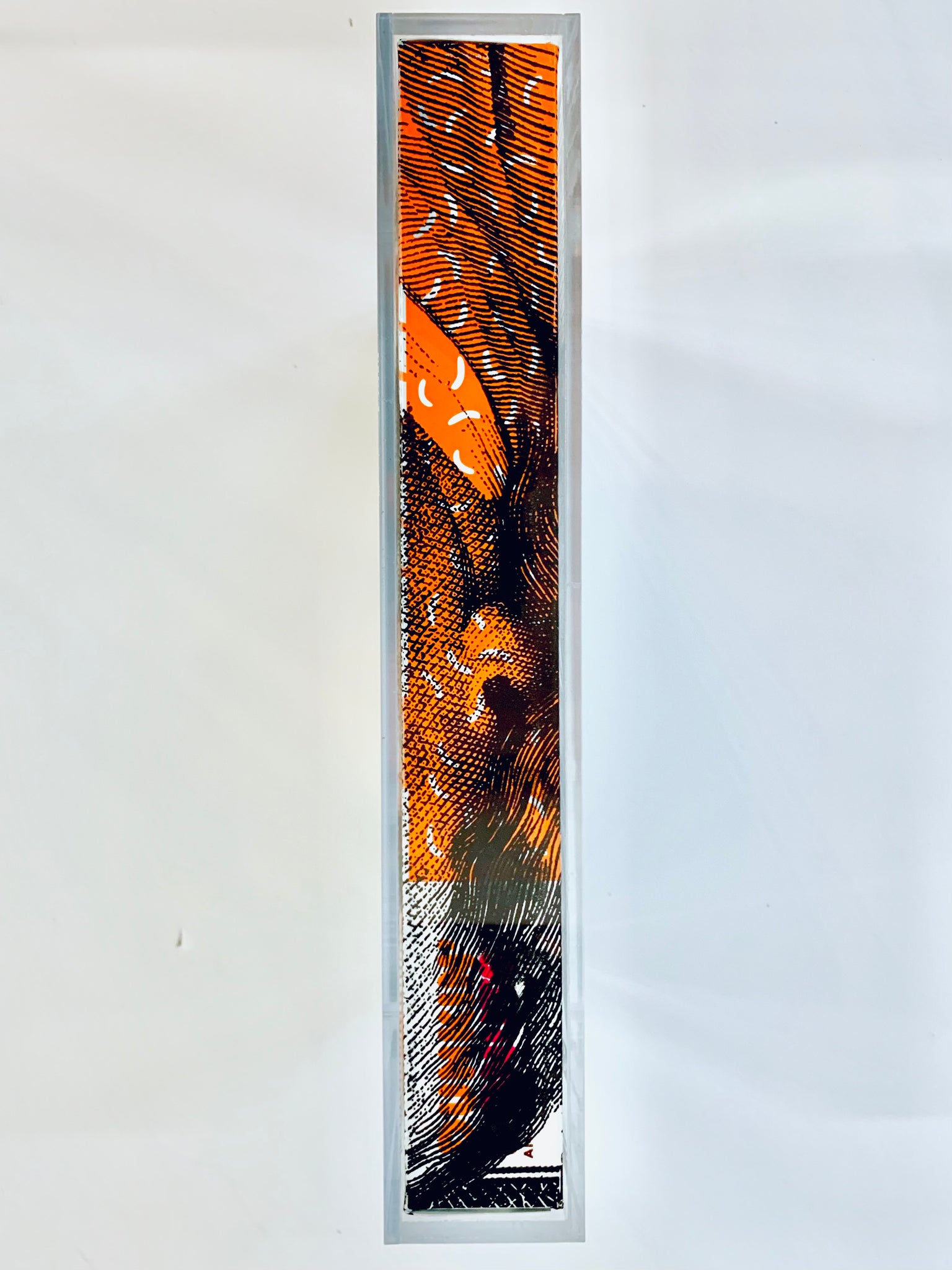 Medium: hand pulled silkscreen on paper box. sealed in acrylic case